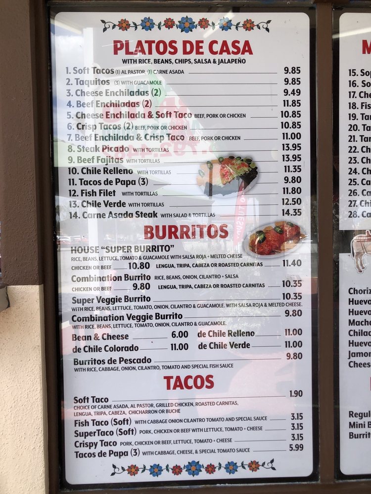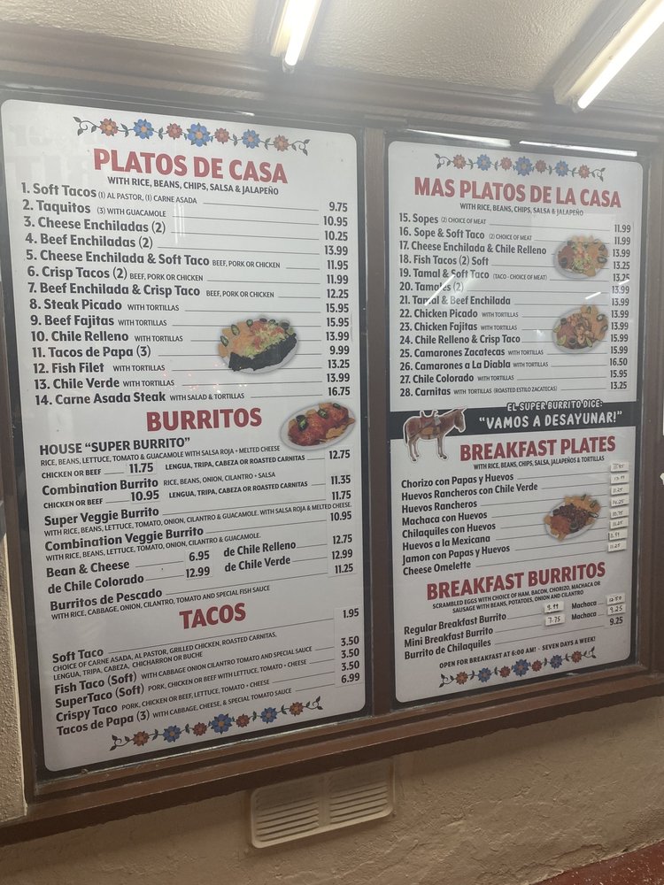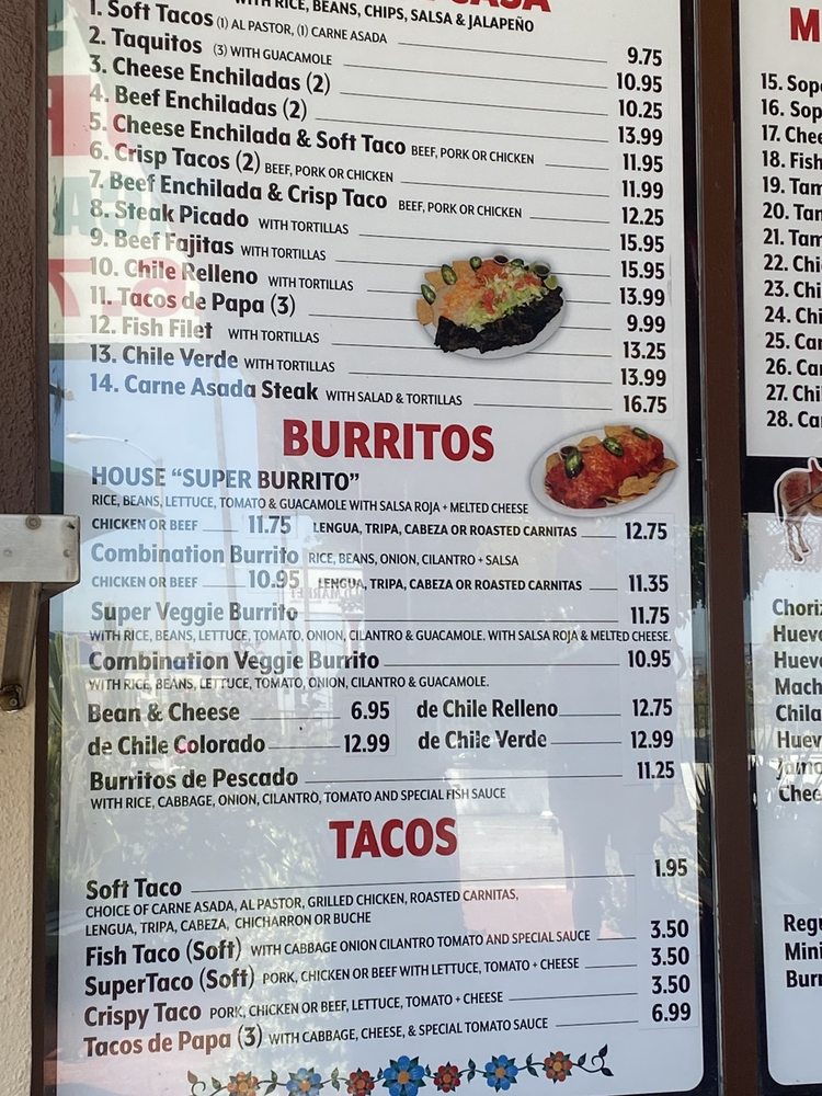 Introducing the menu at El Super Burrito in Pasadena, CA, a Mexican eatery offering a variety of meal deals and daily specials. From El Super Taco Combination to Fish Tacos Combo, the menu caters to different tastes with options like Asada, Buche, Chorizo, Pollo, and more. Customers rave about the flavorful Carnitas Super Burrito and the meaty dishes like flautas and sopes. While some mention inconsistencies in their orders, others praise the outdoor seating and friendly service. With cash-only payments and a relaxed atmosphere, El Super Burrito is a must-visit spot for Mexican food enthusiasts seeking authentic flavors and generous portions. Be sure to try their signature dishes and savor the unique taste of their Mexican cuisine.